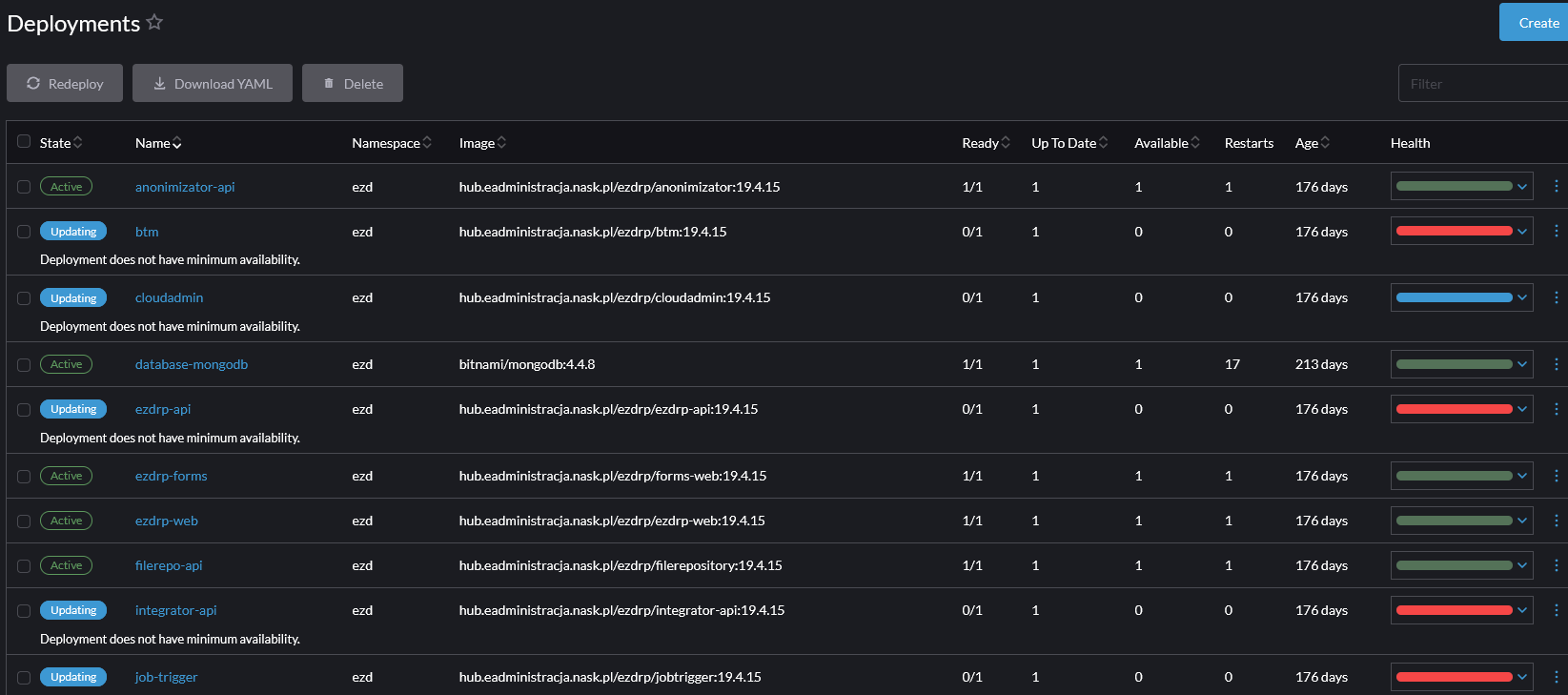 Jakiś czas temu przygotowałem sobie środowisko testowe EZD RP - w wersji 19.4.15. Wszystko ładnie działało. Dłużą chwilę był nie używany, a chciałem wrócić do tematu i aktualnie nie startuje mi środowisko. Poprzednie wersje których mam backupy też nie startują… Czyżbym utracił dostęp do repozytorium i to może być problem? Poniżej parę zrzutów, co może być przyczyną?