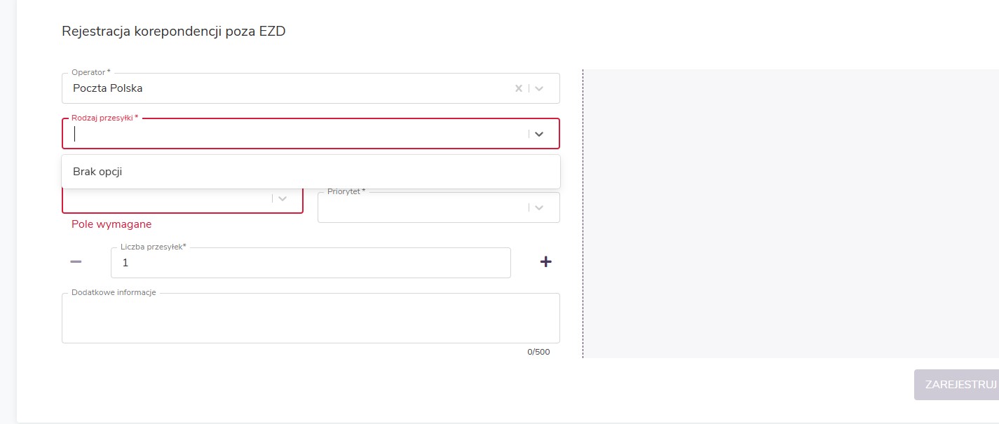 chciałabym zarejestrować korespondencję, która zostanie wysłana listem poleconym. Nie bardzo wiem jak to zrobić. Wchodzę w opcję korespondencja poza EZD jednak na liście nic mi się nie wyświetla. Próbowałam też dodać jakieś parametry w administracji i gabarytach, ale nie wiem czy zrobiłam to poprawnie. Czy może mi ktoś opisać krok po kroku jak zarejestrować taką wysyłkę bez tworzenia sprawy? Podręcznik przejrzałam, filmiki na YT również, jednak brakuje mi w nich pewnych informacji. Nie posiadamy też jeszcze żadnej umowy z pocztą polską.